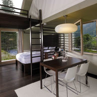 Diese mobilen und autarken Wohnmodule wurden für das Sozialunternehmen qualifutura entwickelt und als Hotelzimmer in einer natürlichen Alpenlandschaft genutzt.